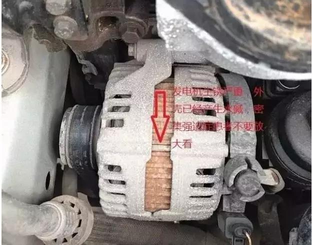 檢查發(fā)電機(jī)后方,電線如殘留泥垢,泡水車可能性極高。