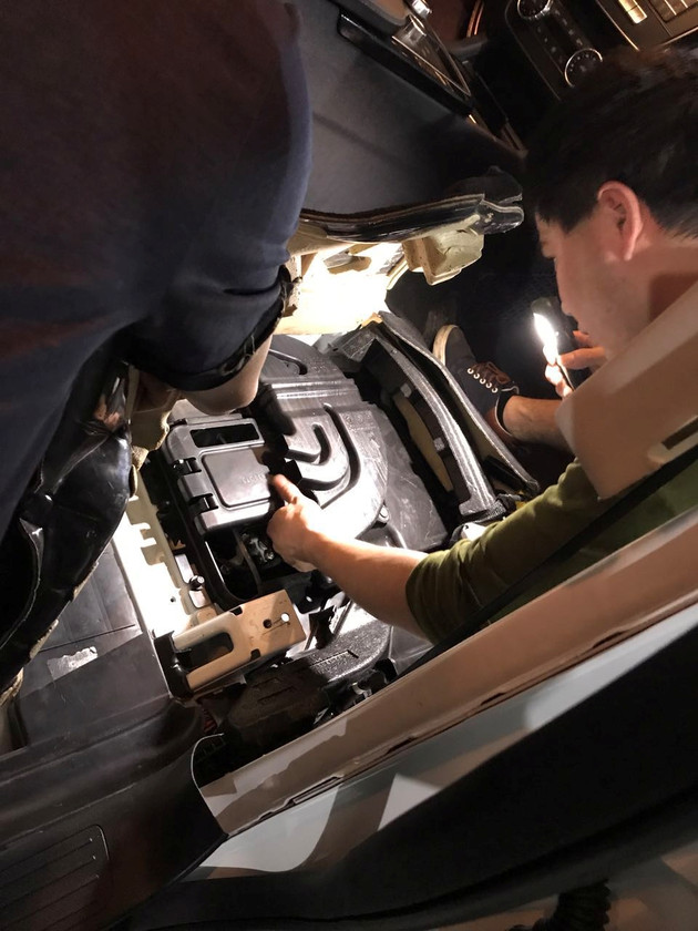 在加裝倒車影像時(shí)師傅們需要拆卸中控部分,后排空調(diào)出風(fēng)口不出風(fēng)4S店技術(shù)人員排查后確認(rèn)是電機(jī)問題,而中國(guó)電機(jī)就在副駕駛儲(chǔ)物箱的下面。在這2個(gè)地方拆卸的時(shí)候技術(shù)人員發(fā)現(xiàn):電機(jī)被更換,機(jī)體上貼有易碎標(biāo)簽。(這他媽事大了……)此時(shí)的技術(shù)工不敢下定論叫來了奔馳4S店的技術(shù)總監(jiān)。越來越多的問題開始浮出水面……